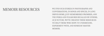 Meanwhile, we have updated our Juncture Workshops site with a compendium of the memoir resources (beyond our upcoming Longwood Gardens and Cape May, NJ, workshops) we've created over this past year. Bill has found a way to make all previous issues of Juncture Notes available for public viewing. Interviews with Paul Lisicky, Sy Montgomery, Angela Palm, Diana Abu-Jaber, Megan Stielstra, Chloe Honum, Kristen Radtke, Brian Turner, Rahna Reiko Rizzuto, Dani Shapiro, and so others can be found here. So can my thoughts on issues relating to the making of memoir, my recommended reads, my homework prompts, and the work of our readers.