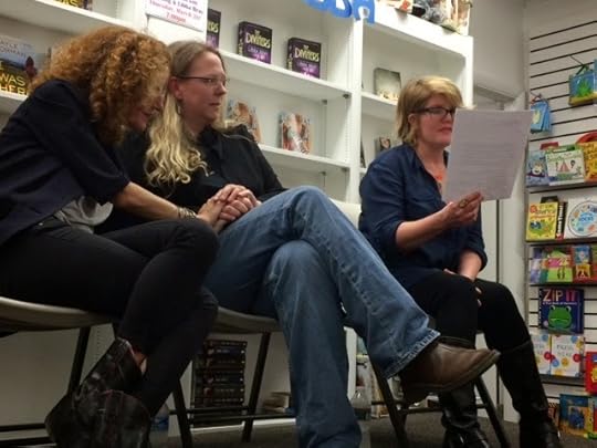 What a performance these three gave—Amy and Libba gamely (respectively) playing the parts of a stoner and a slick boy in a choral reading from Gayle's new bestselling book, I Was Here. Amy giving a thrilling preview of I Crawl Through It. Libba forcing everyone else into scare mode, then zapping the conversation with four parts hysterical ad lib and one part Barbara Walters. And then plenty of talk about the F word, by which I mean (of course) Feminism.