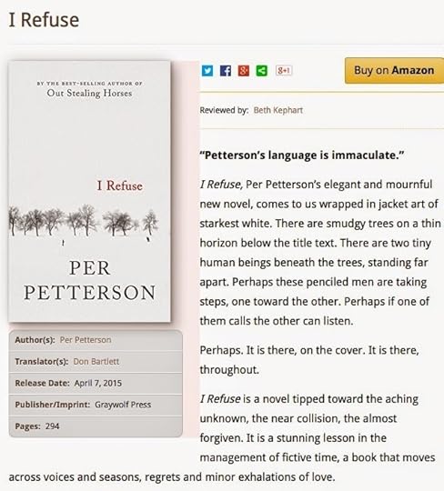 Thoughts on I Refuse (Per Petterson) in today's New York Journal of Books