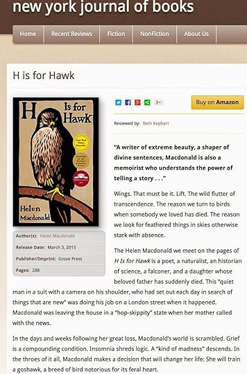 And so when I began to read of Helen Macdonald's new memoir, H Is for Hawk, already a bestseller in England, I became desperate for the time to read that book myself. Over the past two days I have done just that, then sorted through my thoughts to write a review for the New York Journal of Books, where I'll now be penning my thoughts on literary adult fiction, memoir, and literary young adult novels.