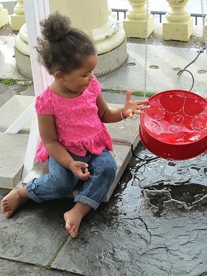 But this was beautiful, too: the way we adults quietly took it in—the thrumming of the river, the pavilion of flowers, the old-world mechanics of water power, the simple rising of the tide against a fiber texture. There we were, in a city, and what we felt was a quieting down, a simplifying, a moment for prayer.