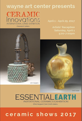 Brett, who thinks about the plasticity of the earth and the countless ways it can be dug out and shaped, has been building toward these twinned exhibitions for years. He's been traveling the country in search of the finest clay practitioners and spending time in art studios for Essential Earth. He's been searching for just the right judge—Chris Gustin— for Innovations. He's been coordinating with the leaders of the Wayne Art Center, where Brett teaches and where international and regional shows are showcased year-round in two beautiful galleries. Brett has had a vision. It has been realized.