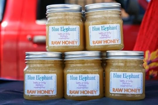 A jar of Blue Elephant happy go lucky summery meadowflower raw honey, found a few stands down from John & Kira's.