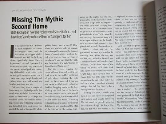 Shortly after I return, a gift arrives—an absolutely gorgeous hardback history of Stone Harbor, which was "my" seashore during my growing up years and which has in recent times been returned to me by my brother, his wife, and his children. I wrote of my love for this place in one of my first stories for the Philadelphia Inquirer, and not long afterward, Amy Welsh, on behalf of the Stone Harbor Property Owners Association, wrote to ask if she might include the essay in the Stone Harbor centennial story.