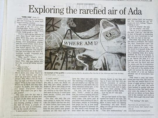 The Berlin Wall divides fifteen-year-old Ada Piekarz from her boyfriend, Stefan, in 1980s Germany, and vibrant, rebellious Ada, “Professor of Escape,” desperately wants Stefan to make the dangerous trek over the wall to freedom and to her. In West Berlin, Ada lives with her depressed mother and worried grandmother in a squatter’s co-op, working in a day care for the children of immigrant Turkish laborers, and, by night, illegally creating spray-paint murals on the Berlin Wall to celebrate those who have safely escaped from the Communist-controlled East. She’s determined to see herself as the person who can take care of herself and everybody else, but her inability to fight the world is tearing at her and making her push Stefan; her pressure becomes stronger as she deals with the aftermath of her own rape and seeks to rescue one of her beloved young charges, who disappears after indications of dangerous domestic violence in his family. Brave and heartfelt Ada is an arresting character, appealing as a committed activist, a punky urban artist, and a young girl in love (she and Stefan, whose grandmothers were girlhood friends, grew up knowing each other). Stefan’s yearning for her, expressed in chapters addressed entirely to her in the second person, seems utterly justified even as it’s clearly tied into his yearning for all kinds of change and liberation. Kephart’s crystalline, resilient prose vividly evokes 1980s Berlin, with elders still deeply marked by World War II, the gulf between East and West tantalizingly narrow (Stefan can sometimes see Ada from his balcony), and the economy running on an ill-paid foreign underclass. Sure, there’s plenty of political extrapolation to current events and issues, but it’s also a keenly intimate story of human love made epic by circumstances.