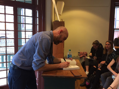 Paul came to speak with our students about his gorgeous memoir The Narrow Door . For more than two hours in the afternoon he stood at that lectern at the Kelly Writers House cafe and answered questions from those (Julia Bloch's students, my students) who had carefully read and wholly embraced his work. He spoke of emotional time, which trumps, in literature, chronology. He suggested the power of staring directly at that thing that you must see...and then turning away, to breathe. He spoke of writing until patterns reveal themselves, about inquiry nudging plot, about learning to work with uncertainty—about learning, indeed, that uncertainty does not necessarily diminish a coherent world view. He spoke of scenes bound together by images, of the responsibility not to replicate memories but to be active with them, to unspool the question; What does that memory have to teach me? Asked about the management and selection of detail, Paul spoke of reverberations, of the need for any chosen detail to deliver far more than the facts.