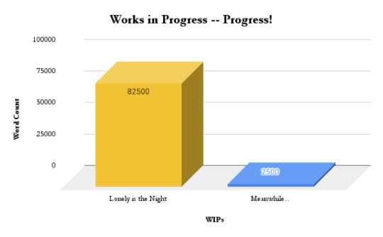 Lonely is the Night – SO. FREAKIN. CLOSE. But I had some family obligations over the last week and this is the draft that would not finish. I figure I have maybe 4k or so left. I need a good writing day or two and this sucker is done. I vow it! On the life of my characters, I vow it!I’m really looking forward to putting Lonely is the Night away for a while. Not just because I’ll have the satisfaction of finishing another first draft (which should not be discounted – it’ll feel fantastic) but because I really, really want to get back to Meanwhile, Back at the Ranch… I was talking about the new project with a few folks over the weekend and it just got me excited about it all over again. But I’ve got to get book three done, it’s already been delay after delay. But I know I will triumph!
