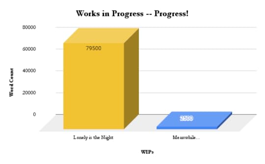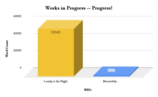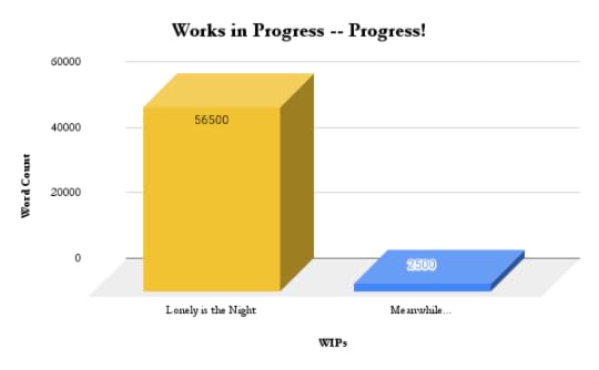 Lonely is the Night – Not as much progress as I was hoping for on this draft, but progress nonetheless! I’m going to put that down to the fact that I had an event this weekend – and that the event unexpectedly went from 1-day to 2! So I had less writing time than I had anticipated. Soon though, hopefully in the next couple of weeks, this sucker will be finished and I can put it away for a little while!Meanwhile, Back at the Ranch… – Still feeling this new piece out as far as tone and plot. Think I’m going to try and write it in 3rd person, which…well, it’s been a minute since I’ve written a book in 3rd, let me tell you that! So it’s taking some getting used to. Really liking how my main characters are fleshing out though!Honestly, when I first sat down to write this post, I was really disappointed in myself. In my progress, or lack of progress as I see it. Looking at the numbers, looking how little I’m moving forward in both drafts…well, it felt like a microcosm of my whole writing career right now. I’m trying as hard as I can, I know I’m putting in the work, but I just don’t seem to be making the progress I think I should.