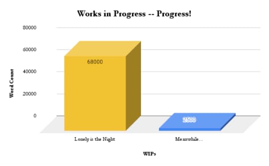 Lonely is the Night – What’s this?? Progress?? Minor, incremental, but definitely there progress?? WHAT?! Yes indeed, folks, I got some time to do some actual, honest-to-God writing in the past week and I took advantage of it. I’m going to get this damn draft done, brick by brick, sentence by sentence, if it’s the last thing I ever do. I don’t want to set myself up to eat my own words, but I think (looking forward at what I have on my to-do list this week) that I may get even more writing done in the next seven days. We shall see! But could I get this draft to the 60k mark? It’s possible!The thing that’s been getting in the way of my writing this week more than anything else hasn’t been lack of time – it’s been fear. I haven’t written more than a few hundred words at a time in such a long time…I worry I can’t do it anymore, you know? That I’ve forgotten how to do it, or lost the spark. I don’t want to fail. But the only way to deal with such fears is to face them head on, and that’s what I’ve been trying to do. And will continue to do. I’m a writer – writing is part of the job description, so there’s nothing to it but to do it!