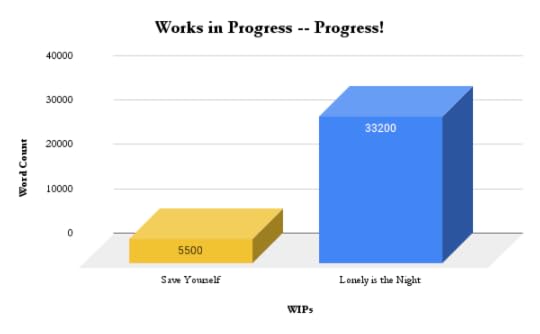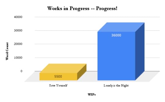 Save Yourself – In all honesty, I’ve largely put Save Yourself on the back burner as I focus on Lonely is the Night. I’d really like to get the third Night book to my editor by the beginning of May and since this is the series under contract, it just feels like it should have more priority. But it’s not only that. The writing is coming a lot better with Lonely (more on that below).Lonely is the Night – Having read Rachel Aaron’s 2k to 10k, I decided to start implementing some of her suggestions in small ways as I work on this draft. I’m still not certain I’m ever going to hit 10k in a day — that just requires a commitment of time that I don’t know I have in me to be quite honest. I get a little antsy sitting and doing one task longer than four hours or so. BUT — her tip of planning on what you’re going to write before you write it? I’m annoyed to say it’s helped dramatically.I’ve never been a plotter – at most, a plantser. But my experiences this past week with writing Lonely may get me to change my methods. Writing should be fun, after all, not a slog, and if planning ahead helps grease the wheels for that fun — well, I might just bite the bullet and do it!