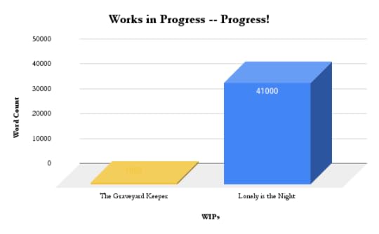 Lonely is the Night – Still plugging away at the first draft! So close to hitting the halfway point, I can taste it. I’ll probably hit it today, which is very exciting. Not entirely sure I’ll make my self-imposed May 1st deadline, but I think I’ll be near to it. External-to-writing stuff (a.k.a. life) has taken up a lot of time that I haven’t been expecting, but I’m still finding space to work on this a little bit every day. The Graveyard Keeper – New project alert! New project with a twist — The Graveyard Keeper is an old project that is technically already finished. So why is it showing up here? Well, I recently made the decision to rewrite the entire thing from 3rd person to 1st person. Am I crazy? Probably. Do I think it will make the whole book better? I honestly do. So I think it will be work worth doing. Yes, it will take time, but anything worth doing takes time and effort and I’d rather do it right than do it fast. So, I’m going to start tracking my progress “from scratch” as it were and see how I move along getting this piece changed over!It’s strange, I didn’t put as many words on paper this week as I would’ve liked, but I still feel like I did really well. I’m very happy with what I’ve written and with other aspects of my writing career (Two amazing signings in two weeks where I sold over eighty books total! Getting to 100 ratings on Goodreads!). I’m going to hold on to that positive feeling and hope it helps the words keep flowing.