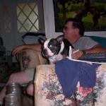 Time to hit the road with three cats and one Boston in kennel crates, two humans and a Ford Aerostar packed to the roof with supplies for humans and animals heading from Texas to Kentucky. While on the road they would run into Dad several times in his truck and Bogey and the cats would get excited as he would give attention to “His Kids”. First, south of Dallas as it seemed almost like he was following the same route as them, then the last meet-up with Dad was as they crossed into Kentucky for the first time as a whole family in their new home state. Mom and Sister knew Dad was behind them by about fifteen minutes as they pulled into the rest area car parking area. Shortly after that, Dad rolled into the Big Truck parking area and came across whistling. Bogey thought he heard something familiar and wanted out of his crate. After a few more minutes, Sister opened his door, and he saw Dad. Out of the crate and across the parking area, this twenty-nine-pound Boston shot, right into Dad. When do terriers settle down, you might wonder? Maybe around seven years old, and Bogey was a long way away from that. And he never really settled down until he was around eleven. Then he just slowed down a bit.