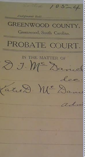 This probate record for Rev. David Timothy MacDaniel is on file at the Greenwood County Probate Office. We learned the first name of Rev. MacDaniel's wife from this record.