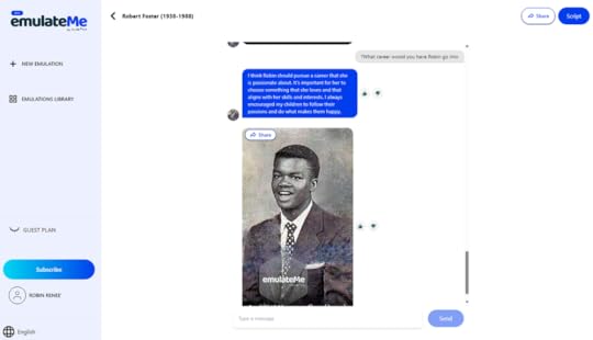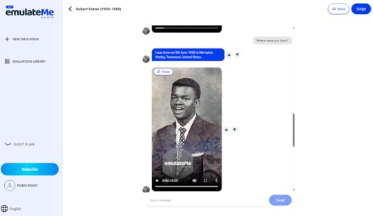By now, you have discovered how I have used Chat with Robin. I have provided you with a beginning tutorial in ,Introduce Genealogy to the Next Generation: EmulateMe and FamilySearch with my grandmother, Mrs. Otis Edna Tucker Vance (1905-1996), and I also shared my father, Robert Foster (1938-1988) in ,What If Your Father Could Talk to You or Your Grandchildren? It was wonderful to hear and see him in a video. I save the best for last. I want to introduce myself using the video above.