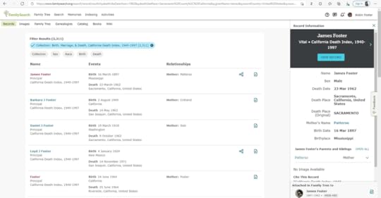 I decided I would work from both ends, so I went to FamilySearch.org to do a search like I have done countless times for James Foster and his father: