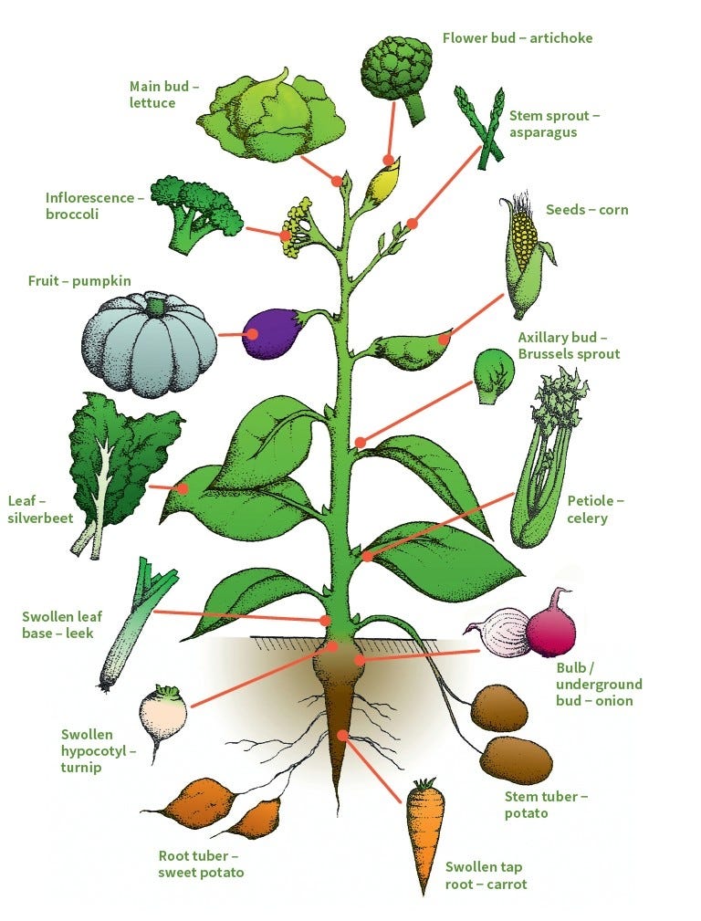Vegetables = potatoes, carrots, celery, mushrooms, fennel, okra, bok choi…