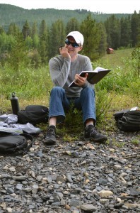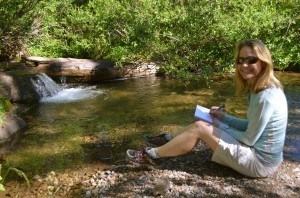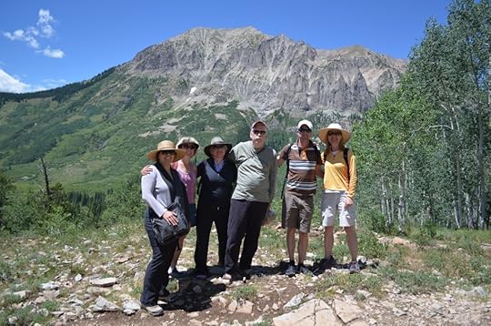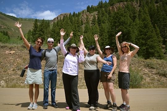 Getting grounded at 9,000 feet: Skywriter Ranch writing retreat 2012 participants climb to Judd Falls above Gothic Mountain, Crested Butte, Colorado to learn cause and effect in story structure.