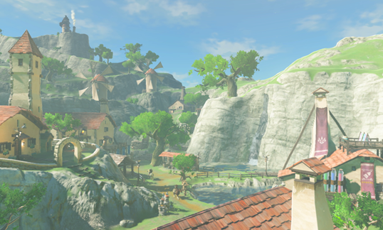 Al ver donde estaba, vio una torre en la distancia, pensó que se veía familiar, entonces se fue en esa dirección. Al ver muchos humanos, se asustó y fue detrás de un árbol, y continúo caminando.
