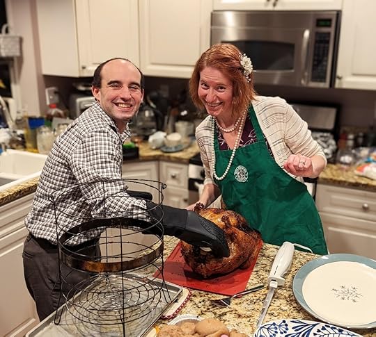 We hosted and did the turkey this year. I think our Thanksgiving turkey was slightly better, but we have gotten pretty good at it. Our trick is the dry-brine process beginning about a day and a half to two days before the event. I get the seasoned salt under the skin to help the flavors seep all the way through the meat. If you generally dislike turkey because it comes out dry, I recommend trying out dry-brining.