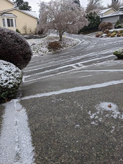 The late shopping excursion could not be avoided. We signed up to bring various vegetables for Christmas Day, so I did not want to buy them too early. Then the PNW icepocolips hit, preventing anyone not desperate or jonesing for adrenaline from going anywhere. At one point I decided it would be a good idea to at least grab the mail since we were not going for our daily walk. That expedition ended at the top of our driveway when we looked down and wondered if we would be able to return to the house after.