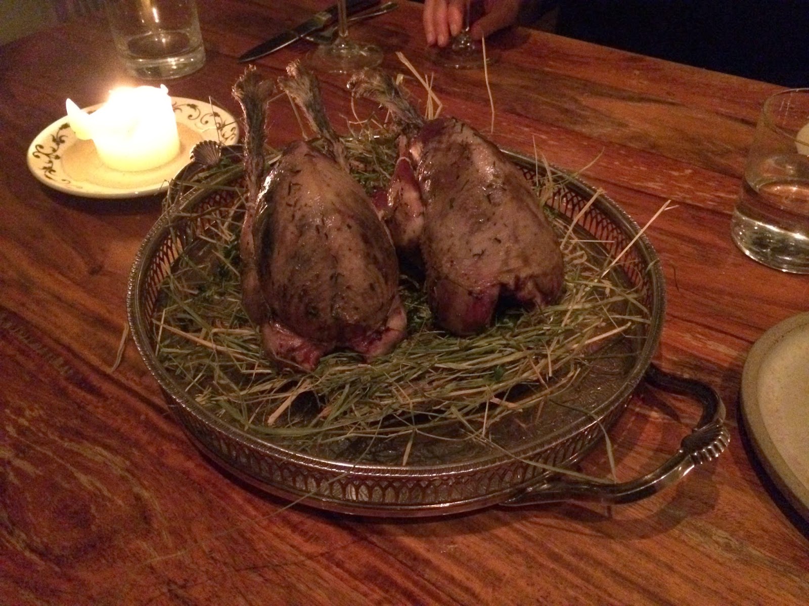 I won't go through all the courses, but I must note that the grouse were among the first of the season, and they were delicious. The chefs showed us the birds before carving.