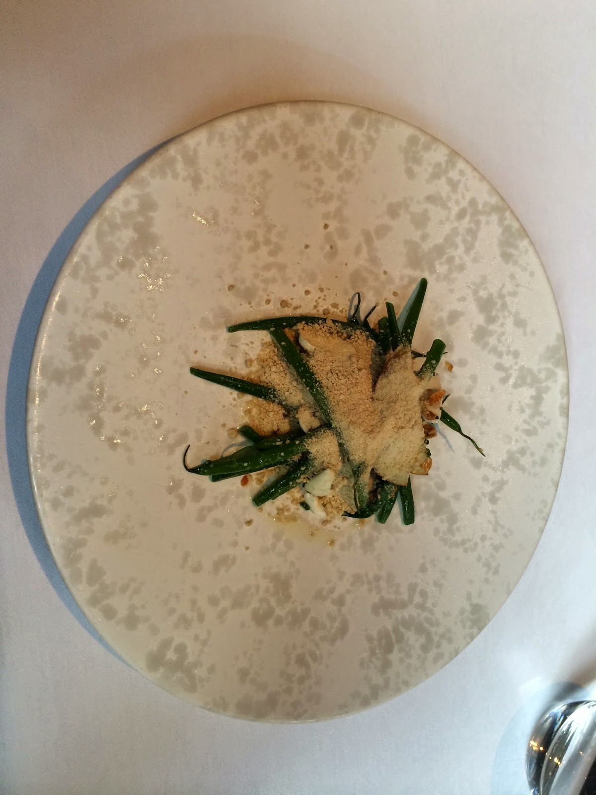 Of course, the fact that the almonds were both powdered and chunked helped, and the presence of cold grated foie gras gave the dish a lovely umami mouth feel, and the peach was a delicious touch, but the green beans themselves were simply wonderful, fresh and crisp and full of flavor.
