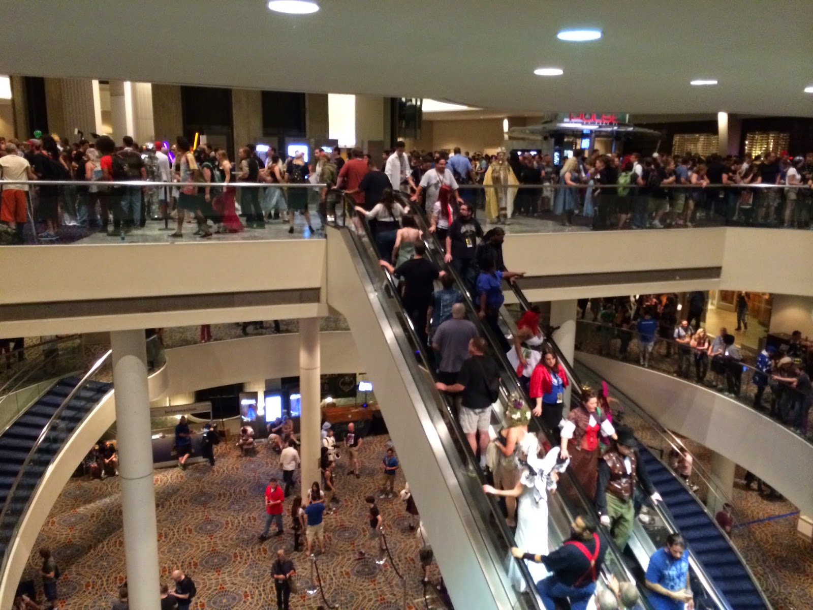 I routinely read and hear discussions of how SF/F is dead, but this con, like many other large cons, puts the lie to that statement. SF/F has carried the day, moved into video games and other games of all sorts, into TV shows and movies, and into the culture at large. Sales of paper books may be down, but overall book sales--ebooks do count--are up. The people at this con are, by and large, young and engaged and passionate about their interests. Those interests touch every aspect of the fantastic. If you asked them if science fiction and fantasy were dead, they would wonder if you were insane.
