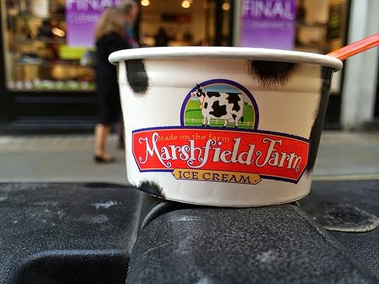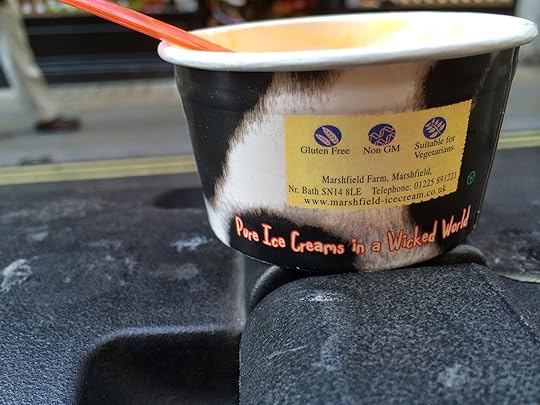 and a new organic ice cream shop, from which I enjoyed a small cup of mango ice cream. I offer this photo of the front of the cup by way of endorsement, for the ice cream was good.