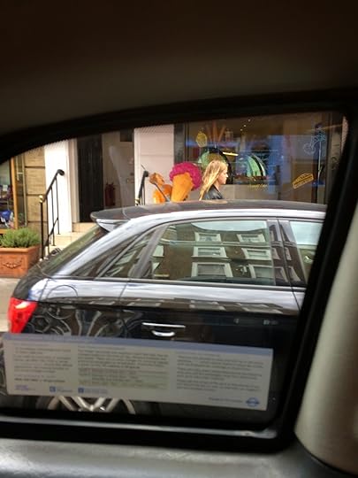 On the way to lunch before a trip to the Natural History Museum, through the window of the taxi I spotted and was able to catch a bit of this fine statue of a boy attacking an over-sized ice cream cone.