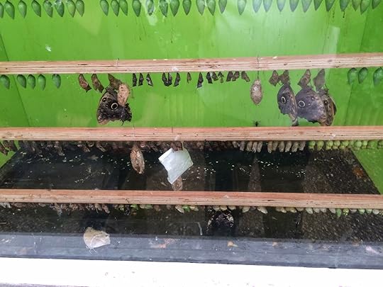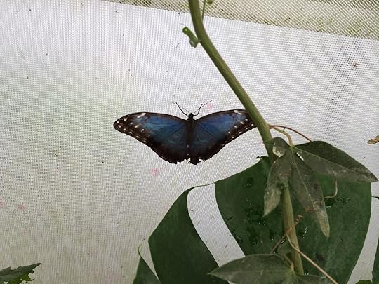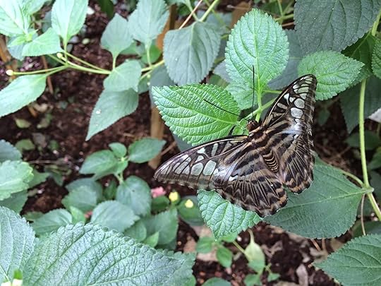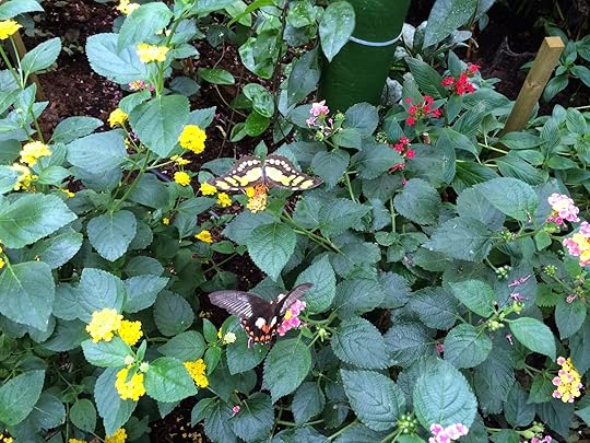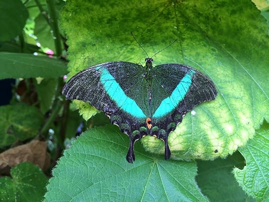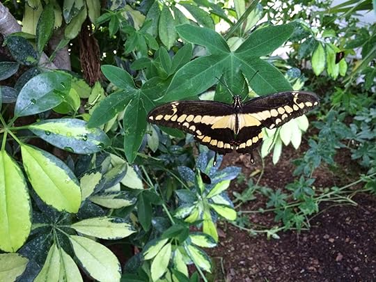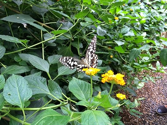 Butterflies make people happy. Everywhere I looked, people were smiling and laughing at the beautiful creatures that were flying all through the sealed space, eating from flowers, enjoying some fruit the caretakers had set out for them, and just resting.