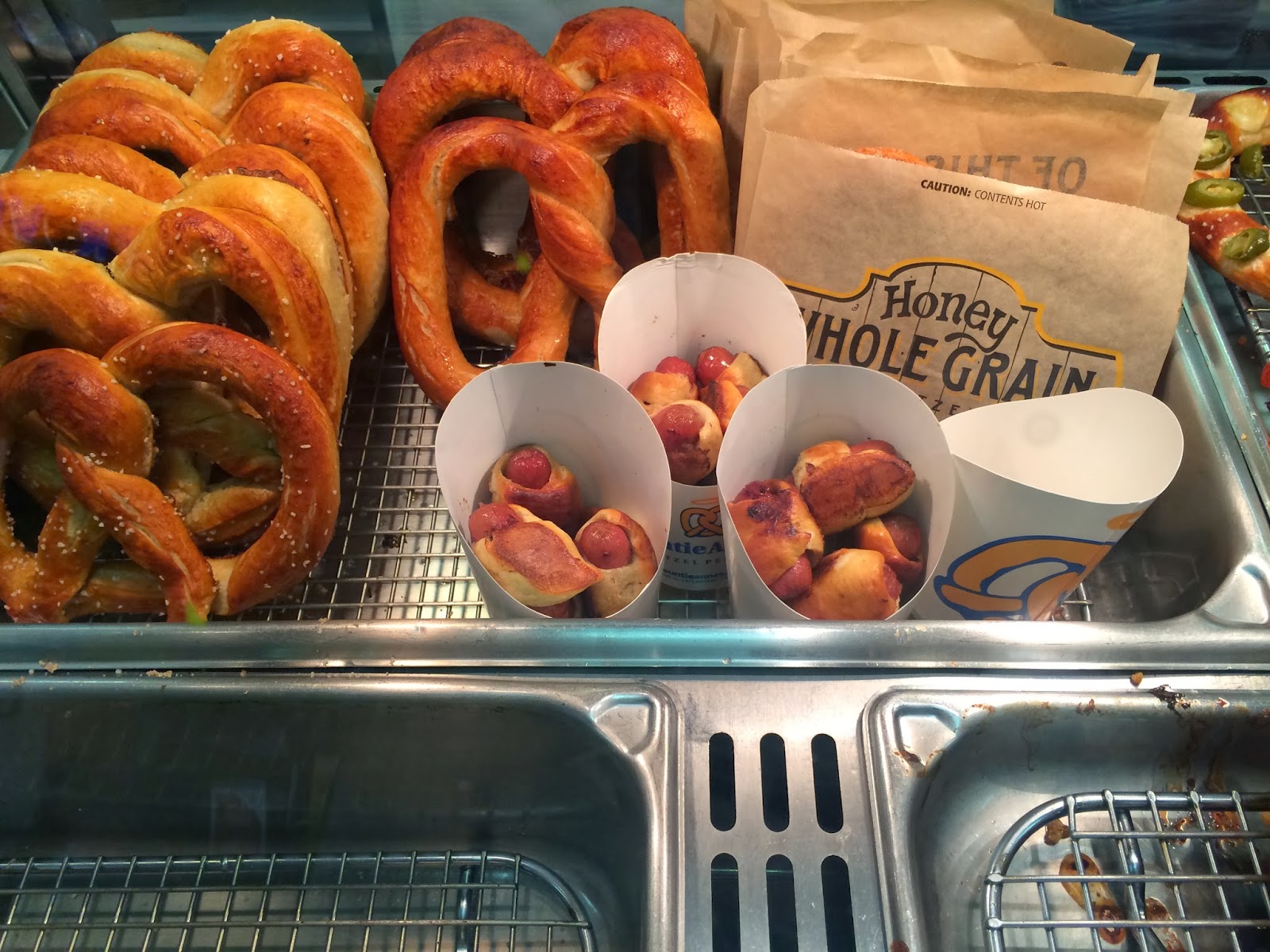 Click on an image to see a larger version.Sarah began with her traditional pretzel, so I took a bite of it as well.