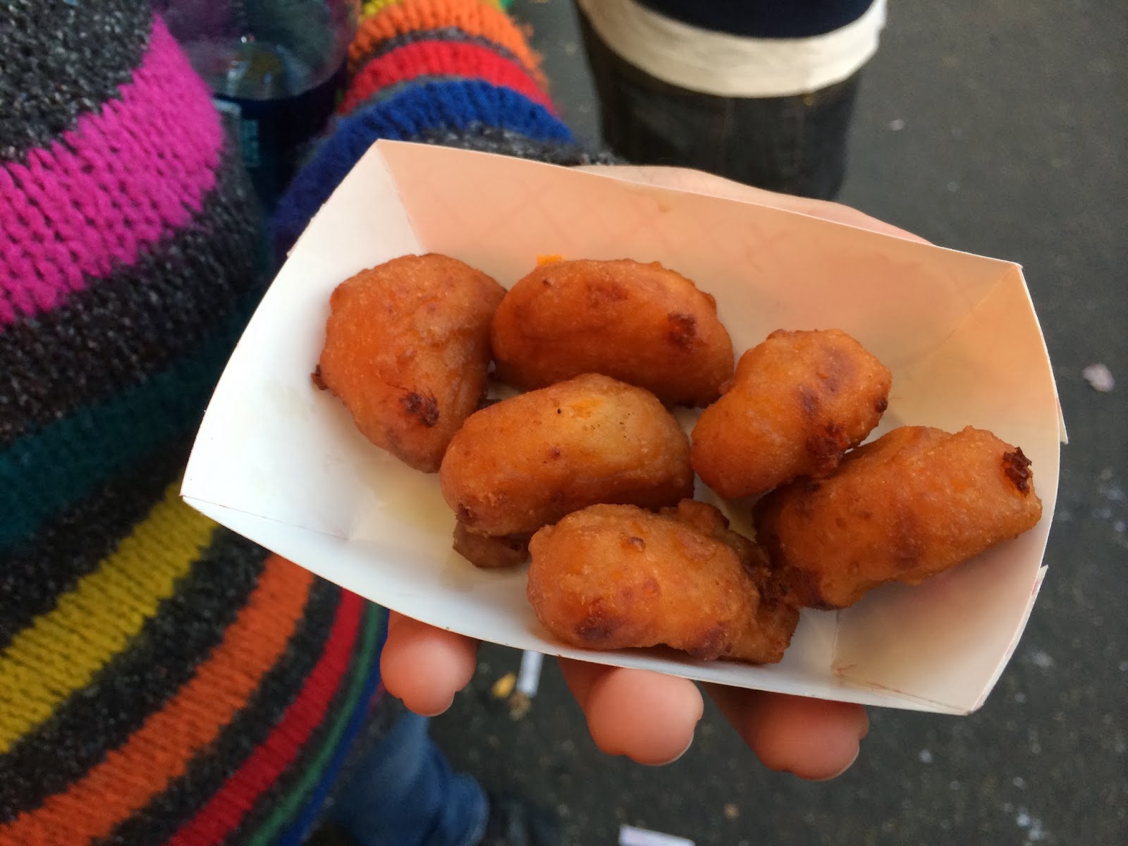 After walking a bit, another sweet treat was clearly in order, so Sarah stepped up by ordering and sharing the mini donuts with cinnamon and sugar.