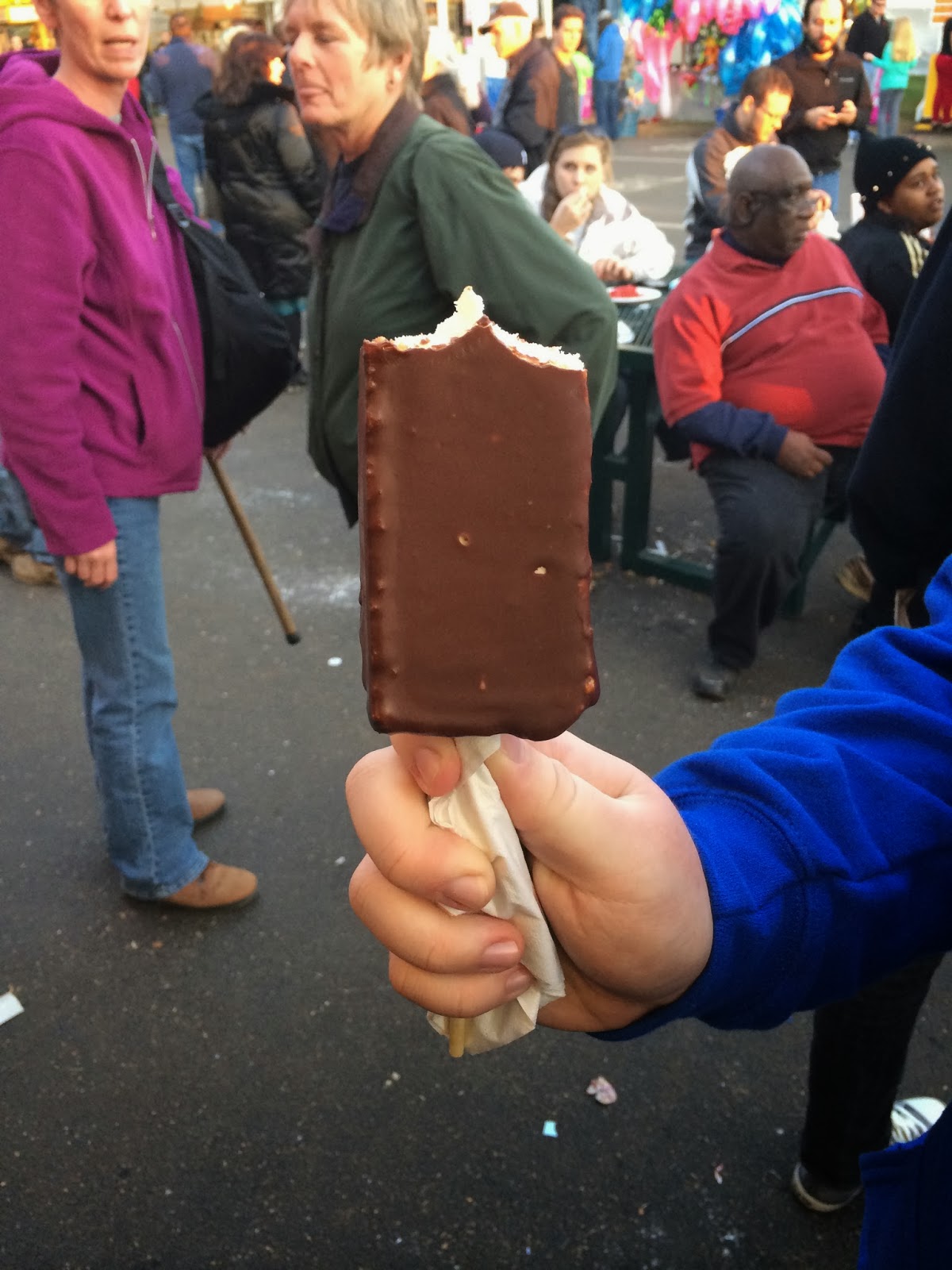 Scott consoled me with a bite of his chocolate-covered cheesecake-on-a-stick.