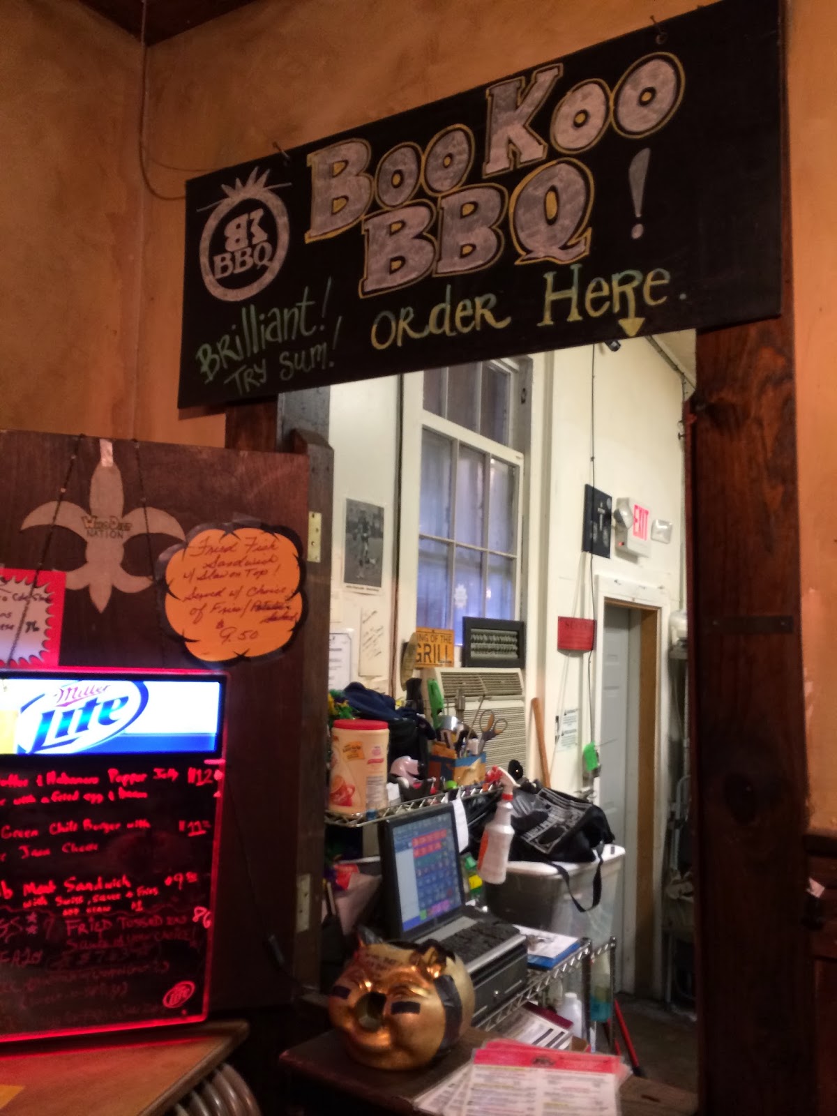 Once you're there, you enter through the bar's main door, hang a sharp left, and walk until you run out of walkway. The Boo Koo order window awaits you.