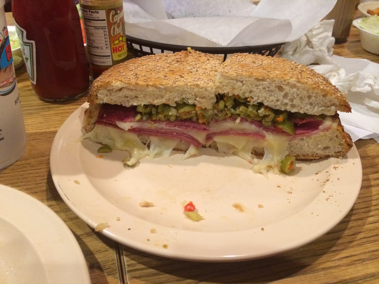 Yes, Come Back Inn really is the name of the restaurant. I shared a sausage po boy and a muffuletta, and both sandwiches were great. Check out the half a muffuletta that remained after two of us ate a quarter muff each.