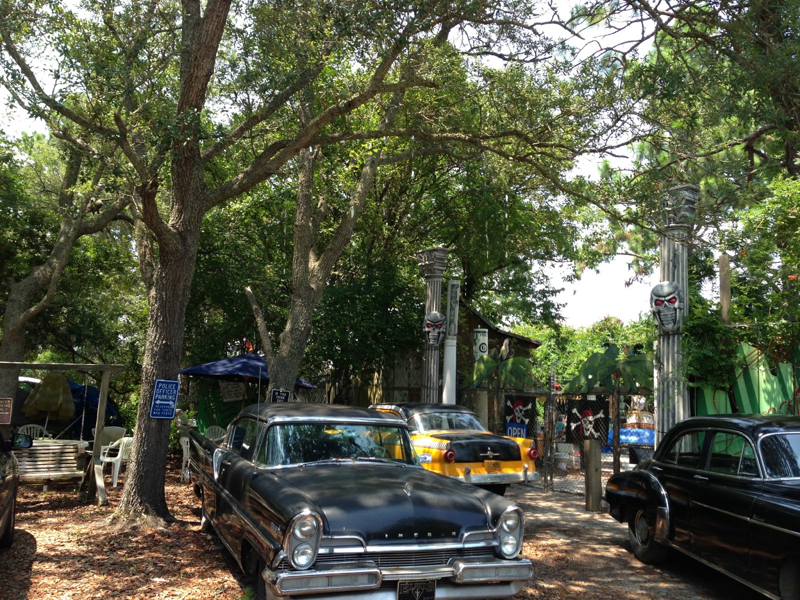The weird highlight of the day was a trip to the Department of Justice--no, not the government agency, but rather a sort of thrift store cum outsider art exhibit cum collection of strange shit. Mirror fragments on threads tinkled and sparkled in the afternoon sun as broken-down cars adorned the lot under them.