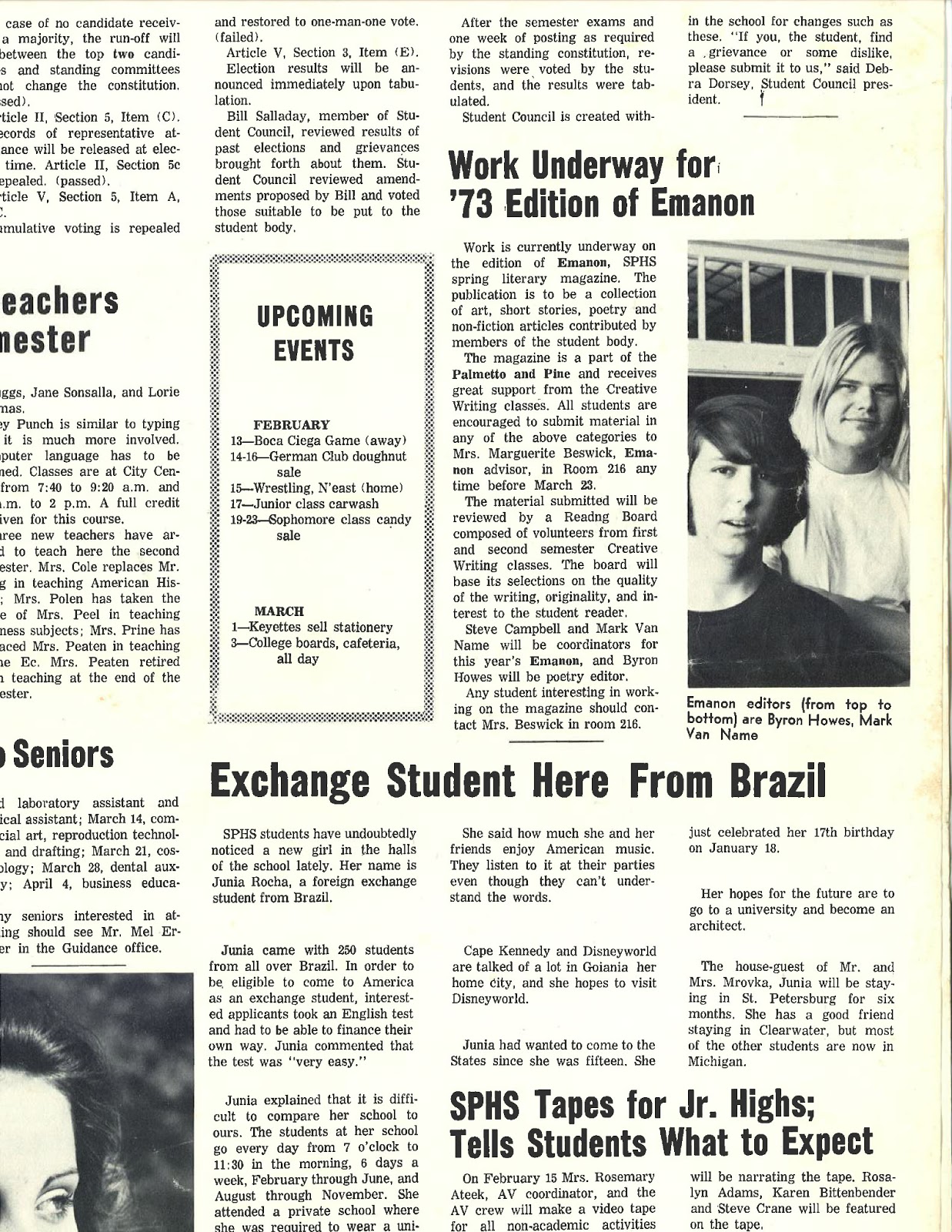(Thanks to Lynn for supplying this page from our old high-school newspaper.)