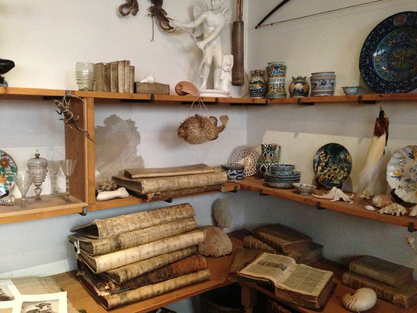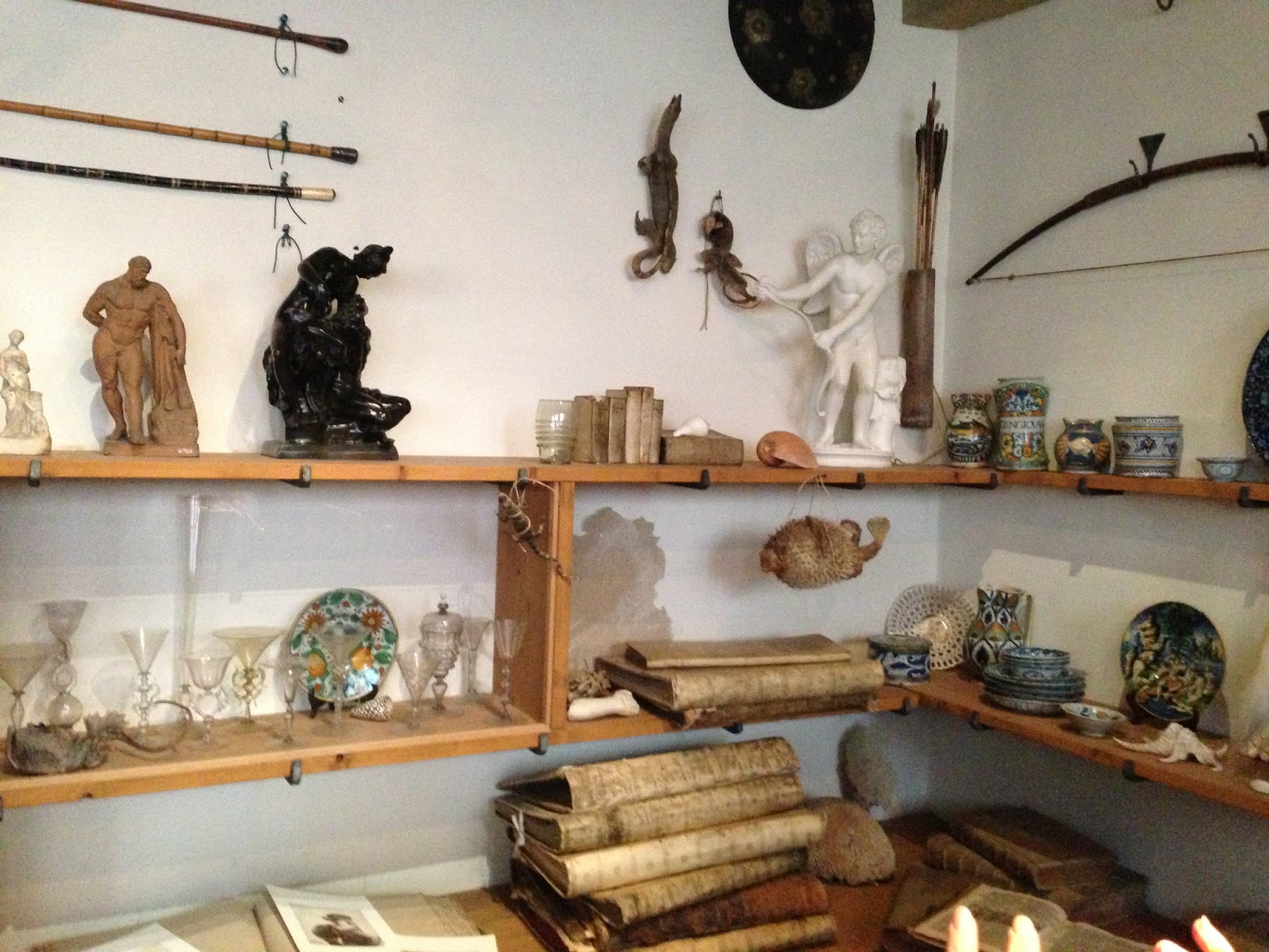 The most fascinating room was what the exhibit signs called his "Art Cabinet," but which we could also term his reference library or even his own personal kunstkammer. He kept not only his art books here--volumes with at one point over 8,000 drawings and prints by many artists--but also a huge collection of oddities, items he found inspirational or useful in his work.