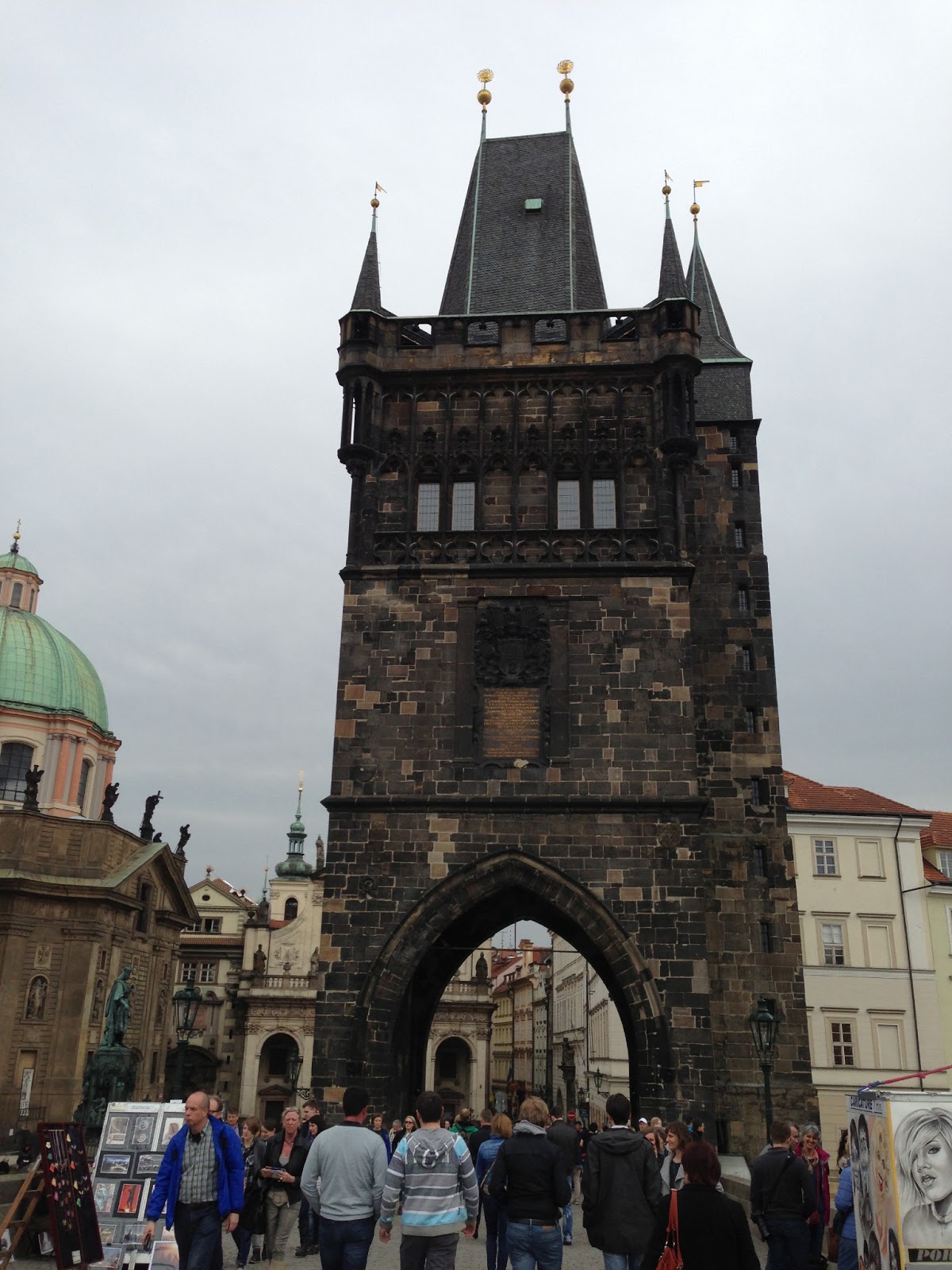 Towers stand over each of the bridge's ends. Here's the one on the Old Town side.