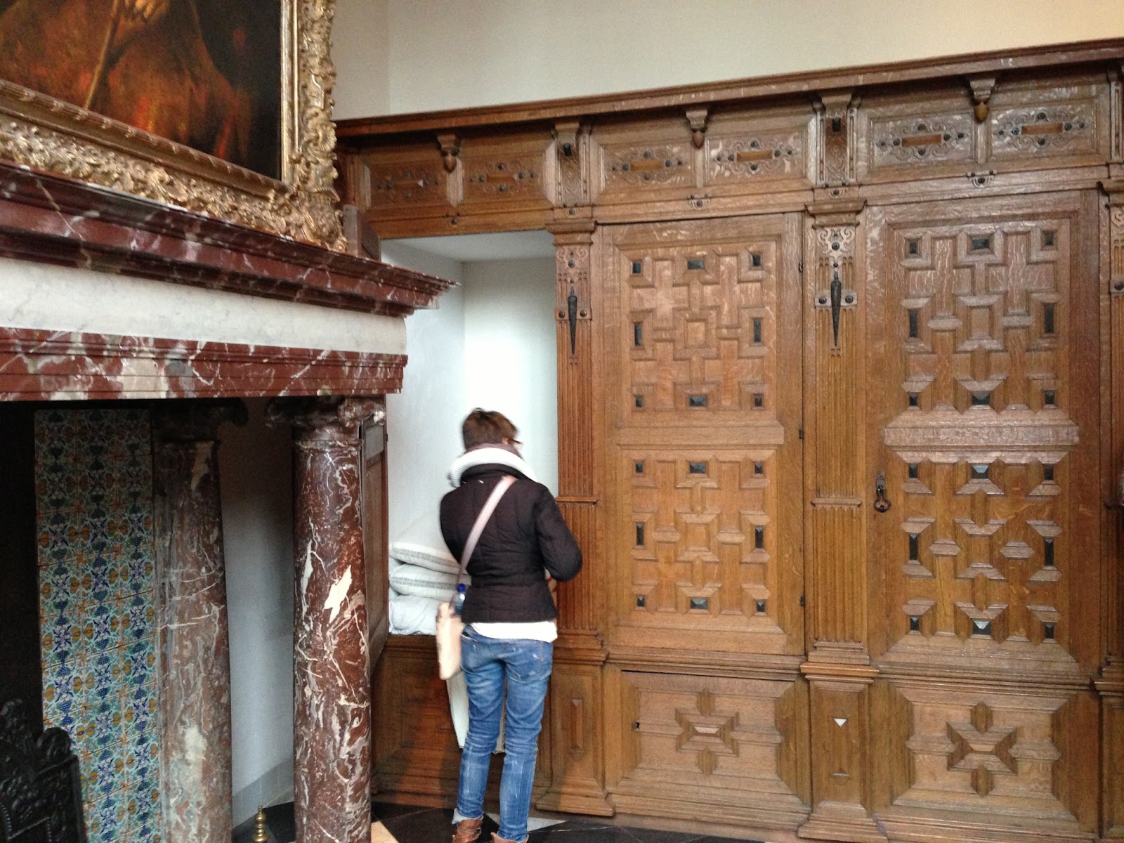 On the wall with the door was a large cabinet that housed, among other things, the maid's box bed.