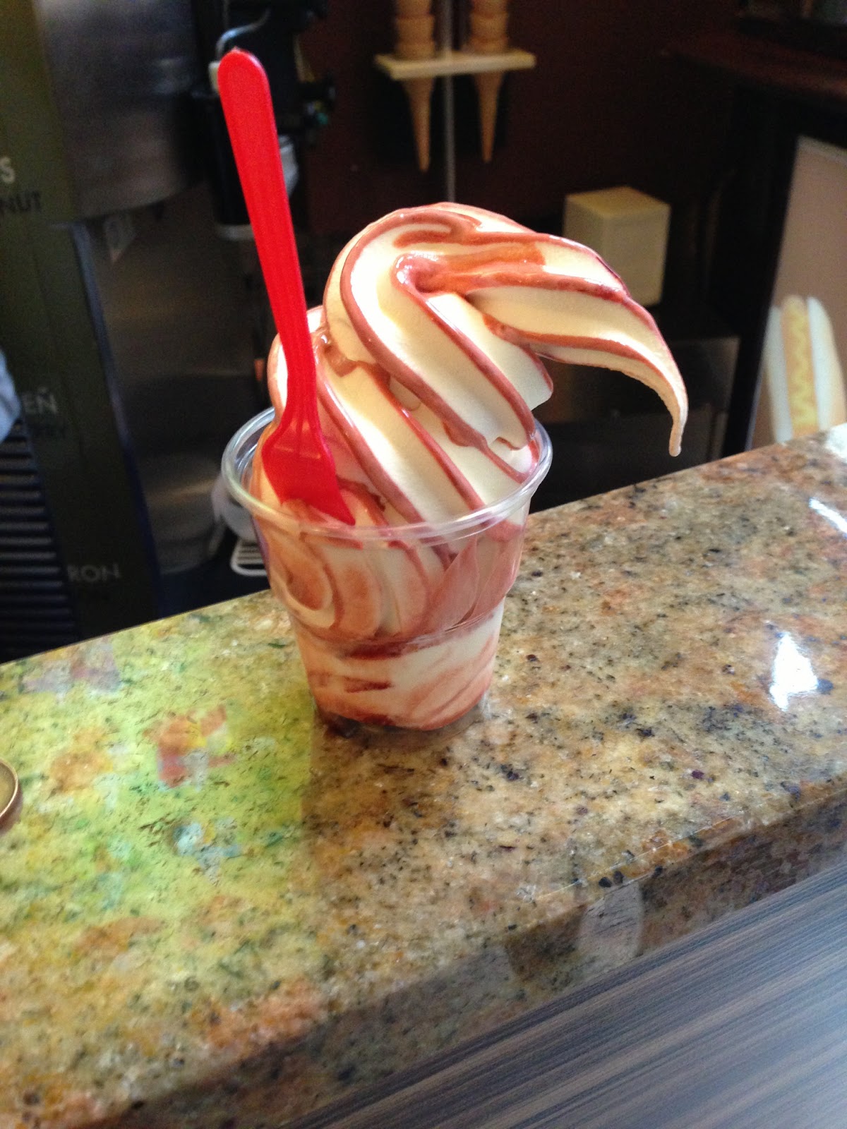 Yes, I treated myself to a small cup of red-streaked, kinda-sorta-cherry squeeze.
