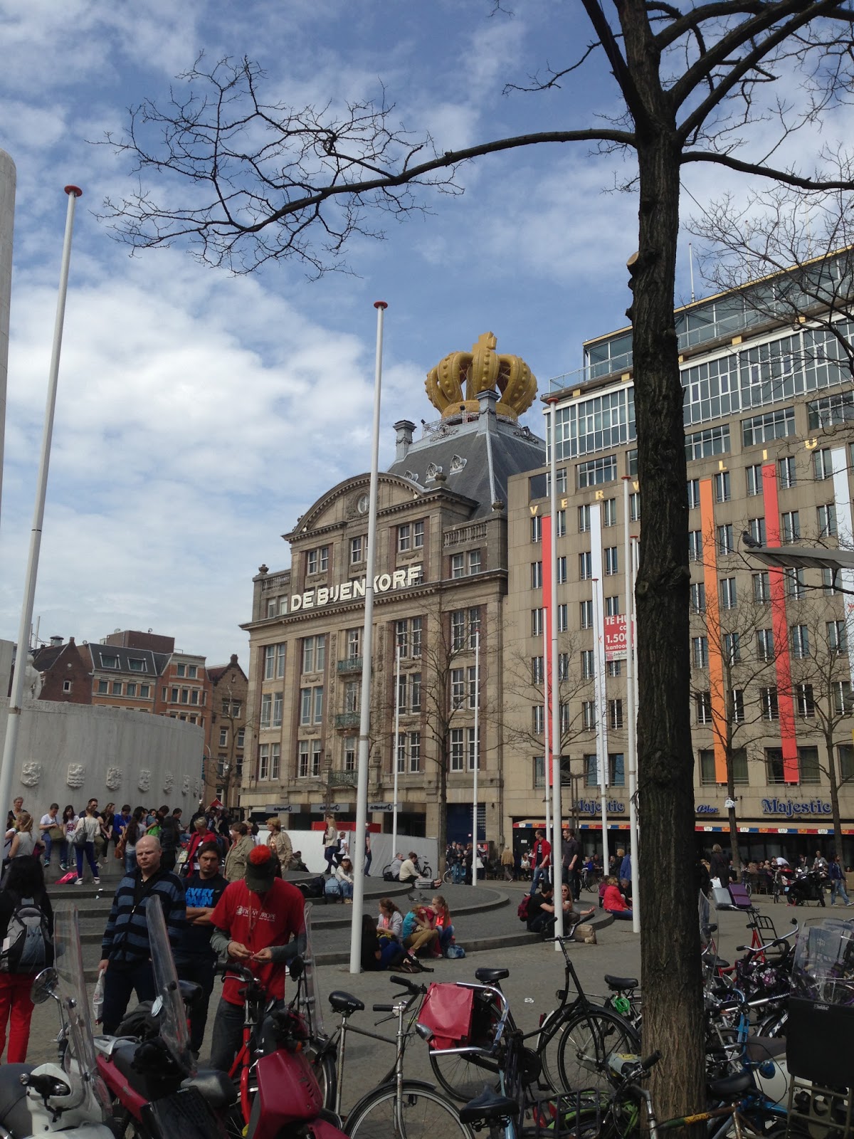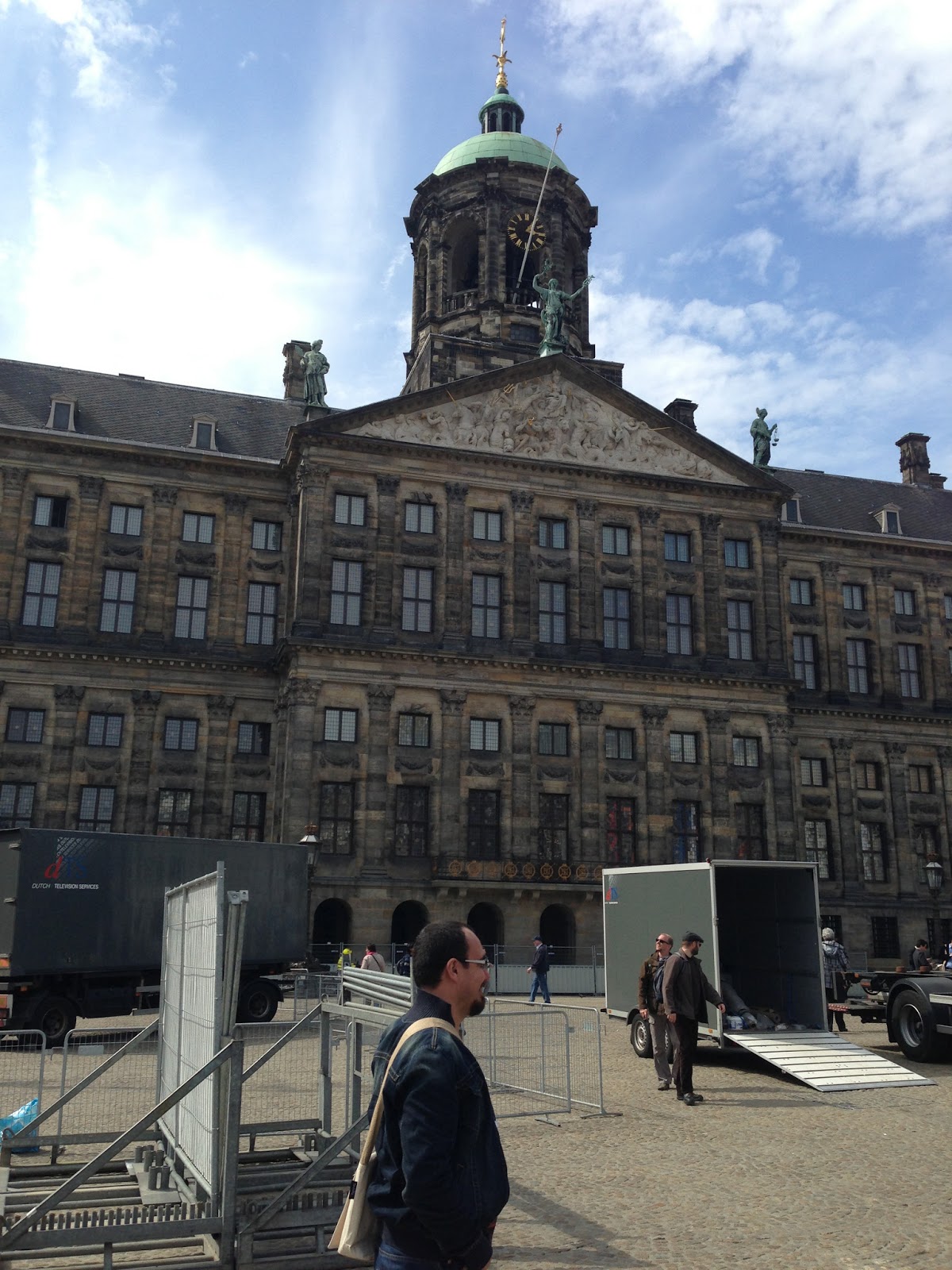 The crown on the building in the above shot is due to Tuesday being Queen's Day, a national holiday celebrating the Queen--and a particularly important one this year, because the next day the Queen will step down in favor of her son, who will become the King.