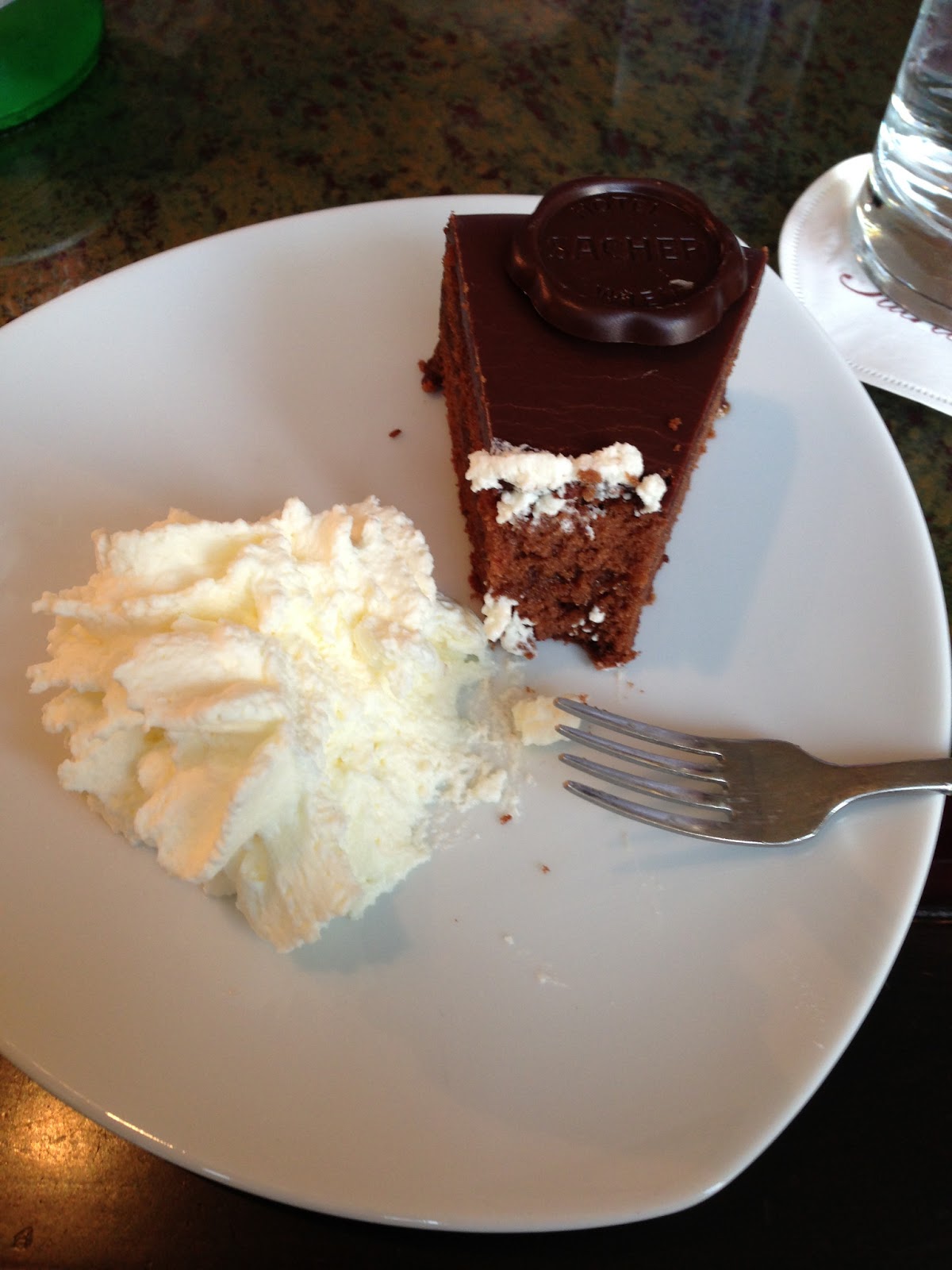 On the I-said-this-was-a-rough-food-day front, I had to make sure that while I was in Vienna I went to the Hotel Sacher and had an original sacher torte (well, one of the two legally approved originals).