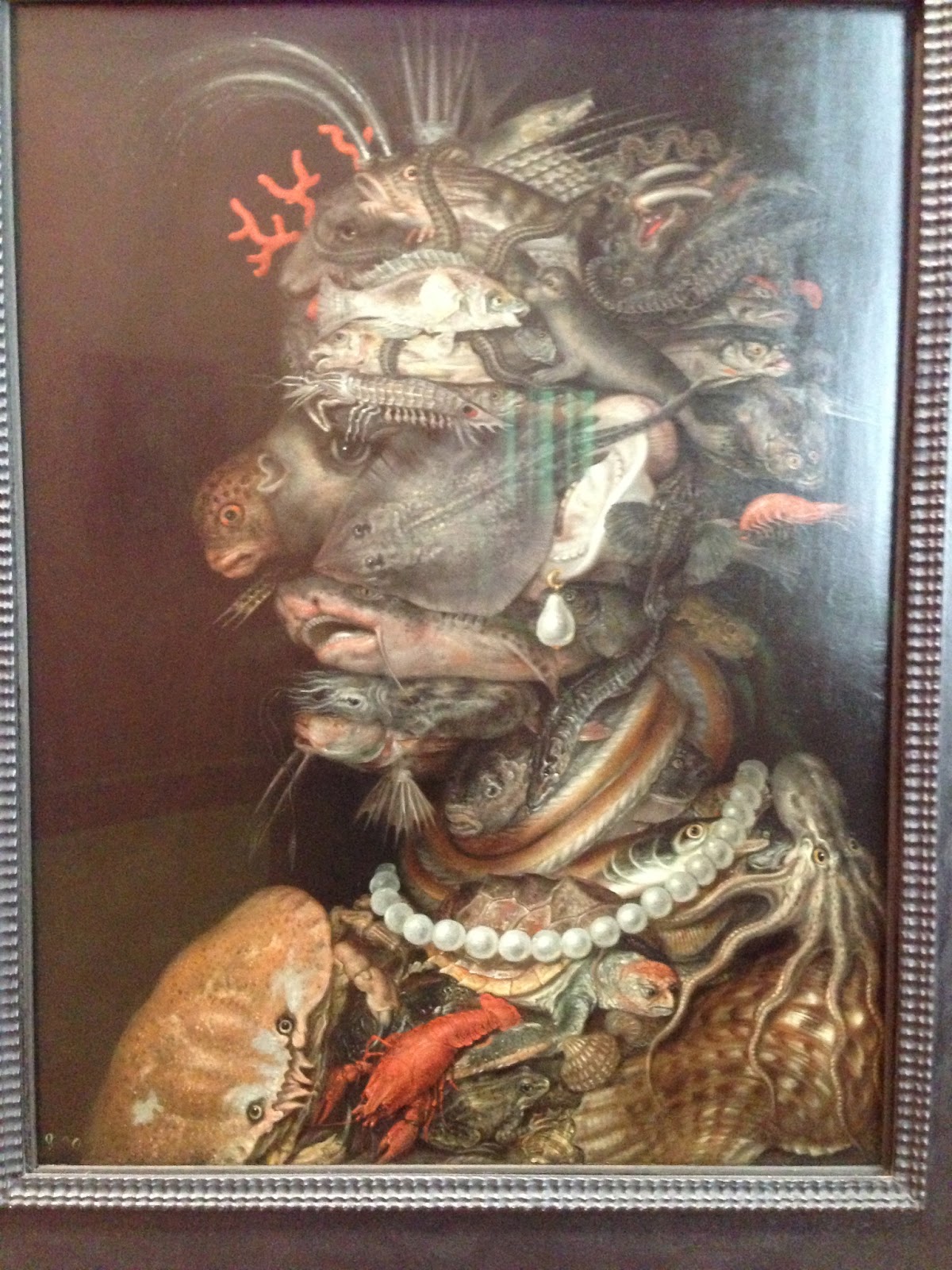 The greatest revelations for me today came from the work of Giuseppe Arcimboldo, a sixteenth-century painter I am amazed and embarrassed I had not encountered before. This guy's best work, his "portraits" of seasons and elements, was whacked in absolutely wonderful ways.
