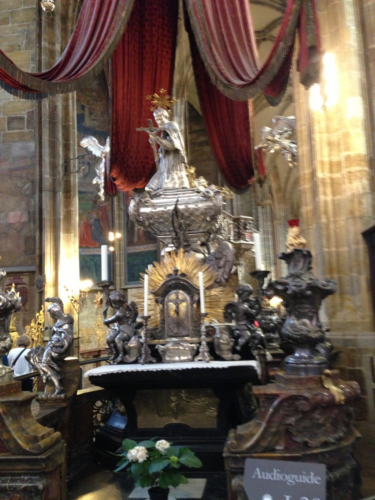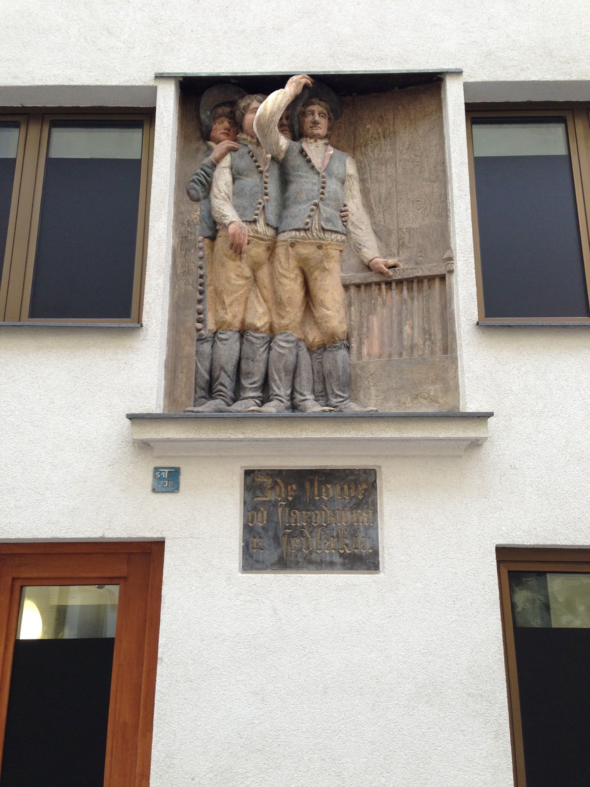 The main bridge across the Vltava river (aka the Moldau) is the Karluv, or Charles bridge. Wide and jammed with tourists at seemingly all times, it is still an impressive span that features a great many interesting statues, such as this one.