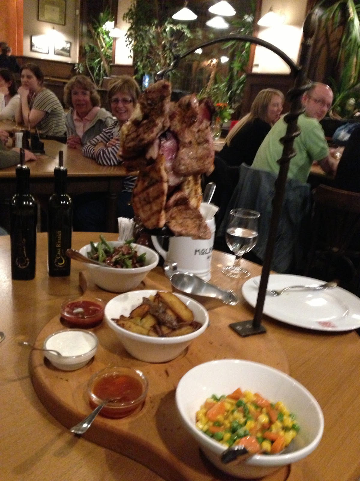 Now, back to that restaurant. The menu featured a mixed grill for two with potatoes and vegetables. The price was very low, so I figured it couldn't be too large. I haven't eaten much meat in quite some time, so we went for it.
