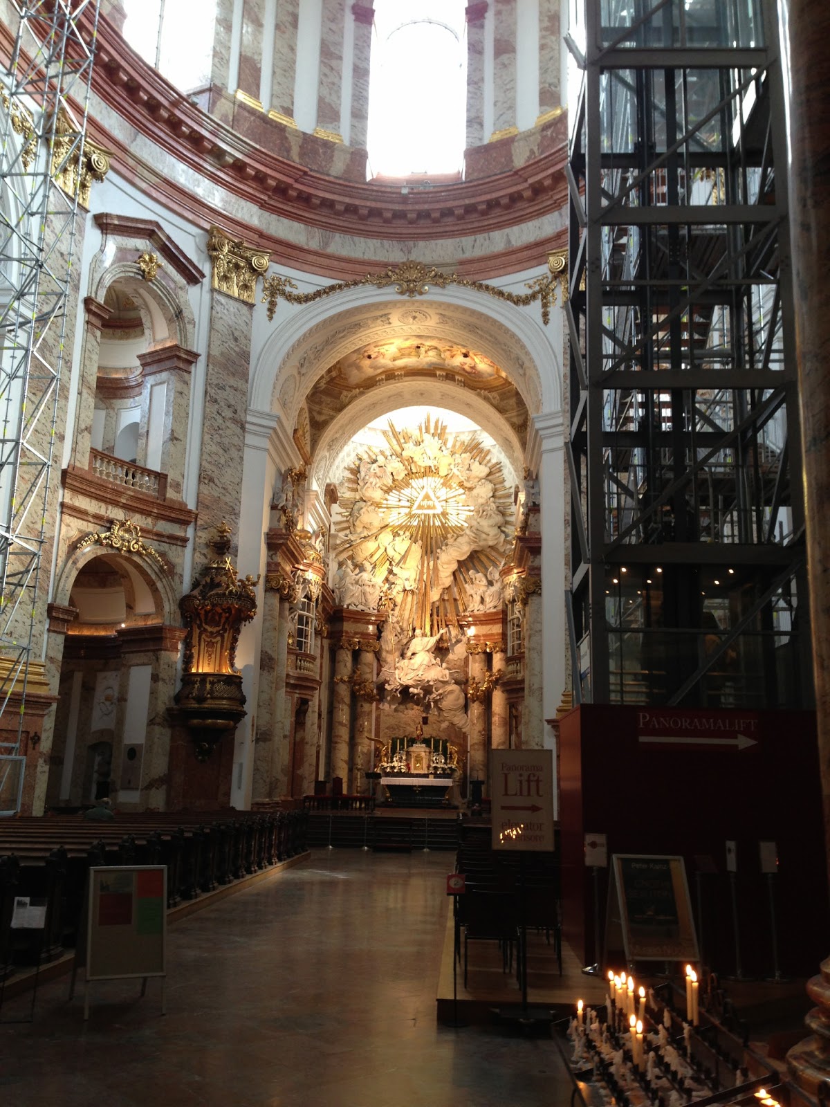 St. Charles' Church, or Karlskirche, is an early 1700s-era baroque cathedral that features both an ornate interior and two amazing columns literally wrapped in carved stories.