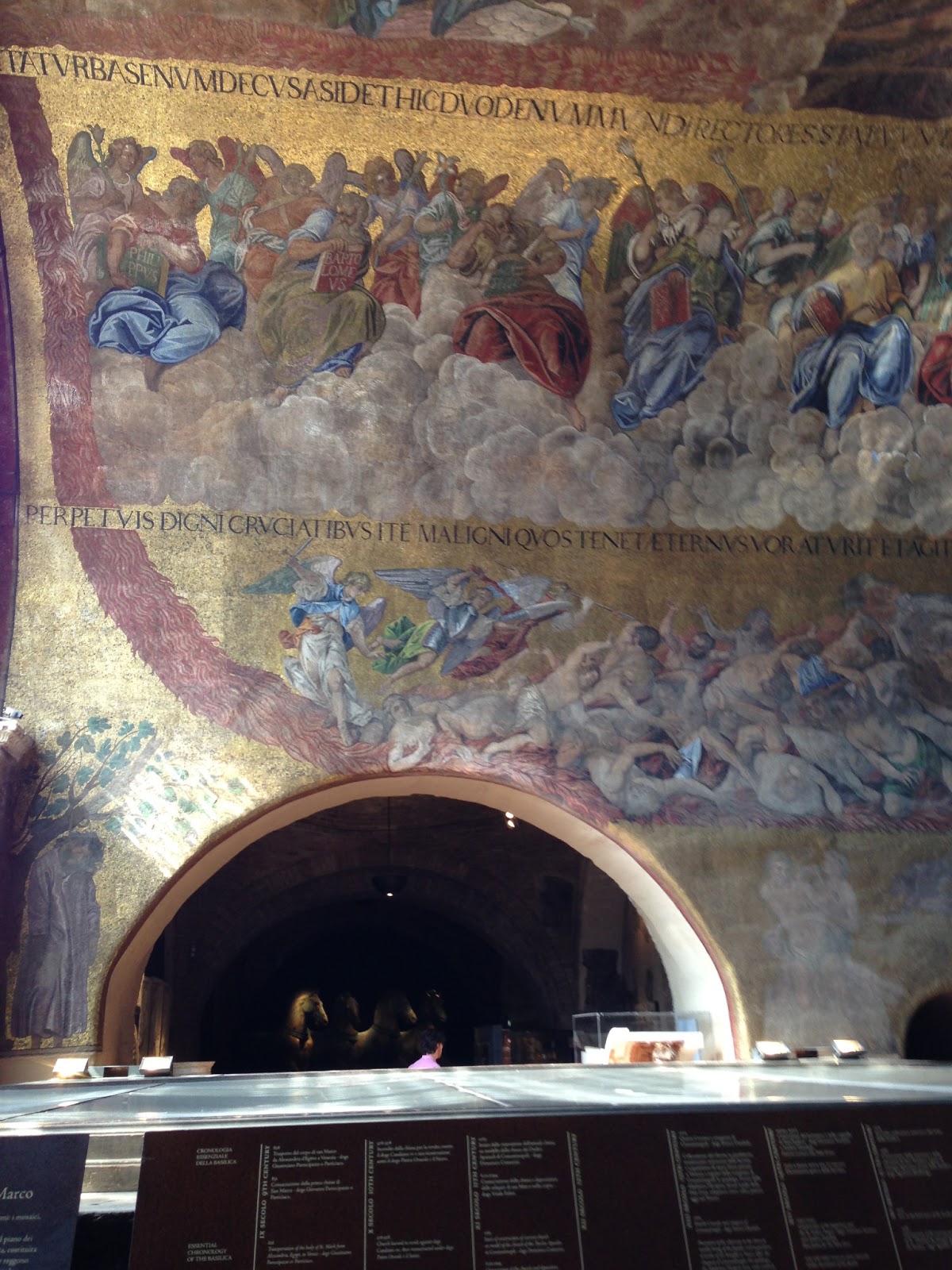 The tour of the upper levels and the outer balcony of St. Mark's were closed when I was first there, but today it was open. Getting to see a few of the mosaics up close was wonderful.