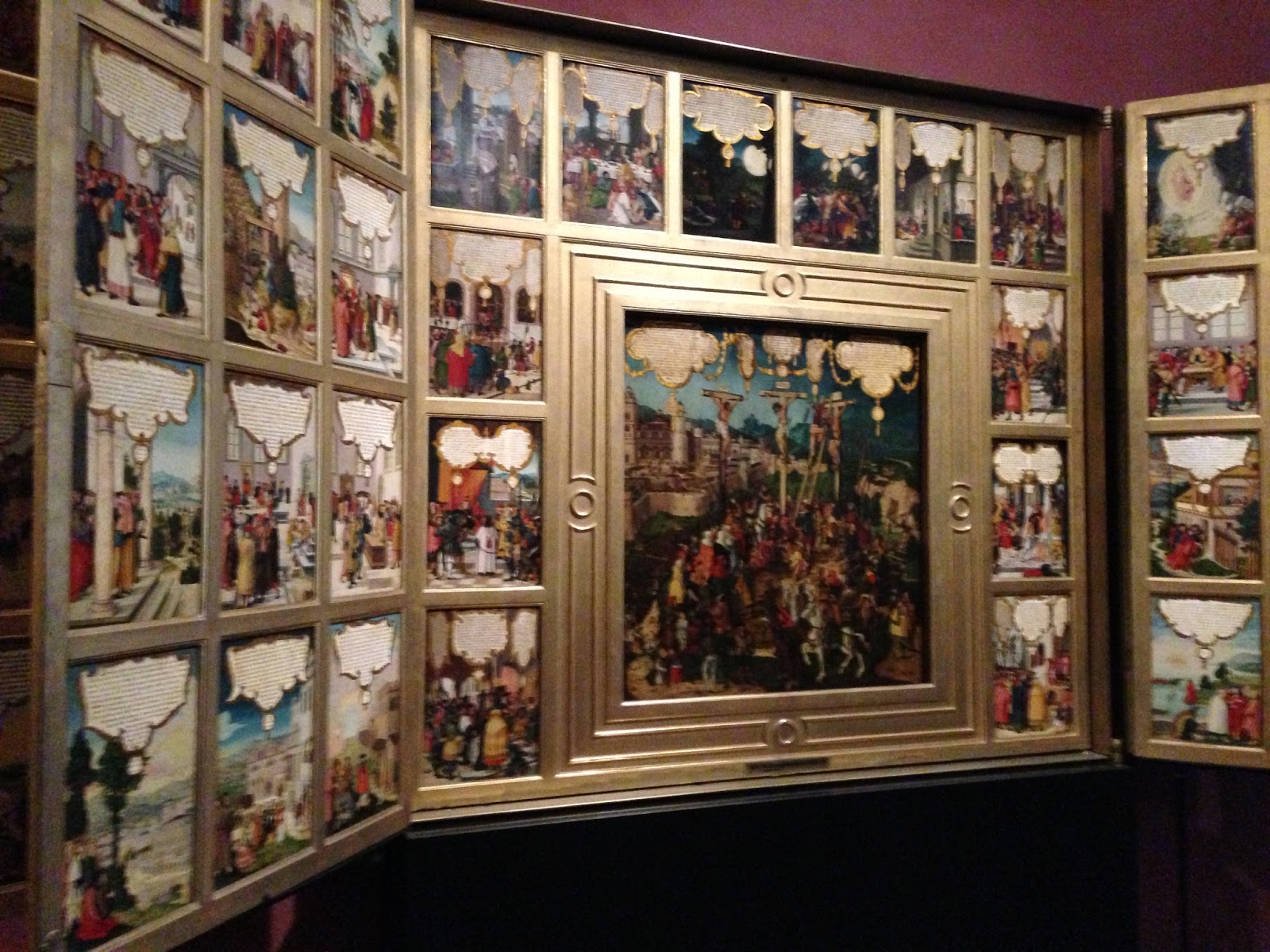 I did manage to take a quick snap of this amazing, multi-leaved altar decoration, a huge construction that in a way was a giant comic book.