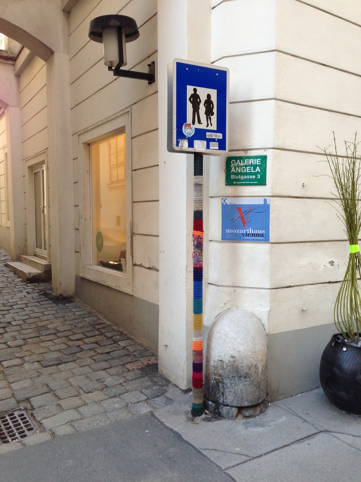 Down the nearest main street from the restaurant, yarn bombers had struck.